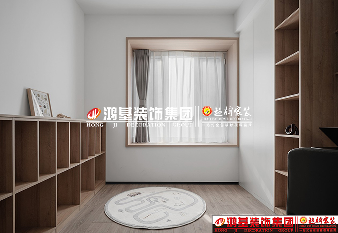 圖7.8亮點(diǎn):兒童房使用原木色為孩子打造純凈溫馨的房間,與白色的組合,整體清爽自然。提高空間的使用率,給孩子充足的地面玩樂空間,造型簡潔的開放式儲(chǔ)物架很適合擺放在學(xué)齡孩子的房間內(nèi),獨(dú)特的造型能夠吸引孩子的注意力,讓他們有興趣主動(dòng)進(jìn)行收納。創(chuàng)造整潔的空間環(huán)境,既可以加深孩子收納的意識(shí),又給予了他們更多自由嬉戲的空間。